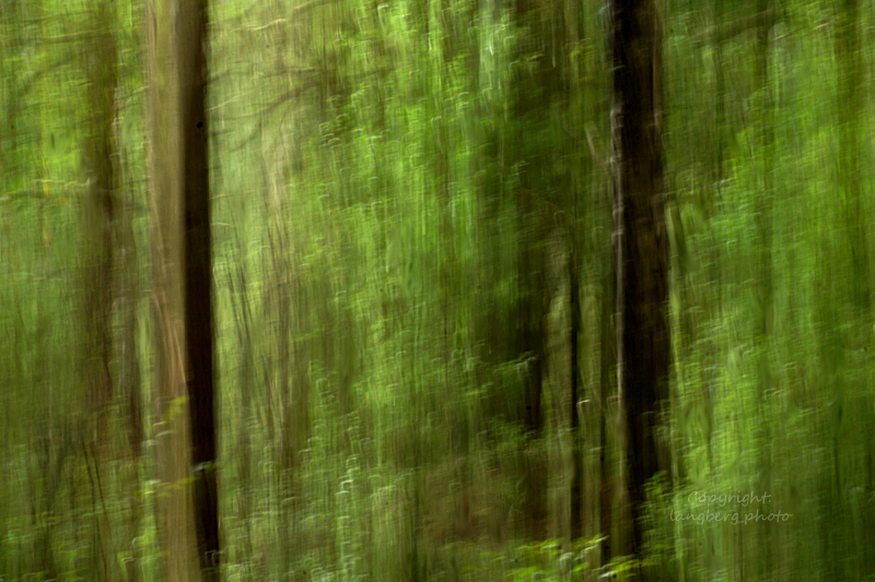Ibland försöker jag mig på att fotografera med kamerarörelse, eller ICM-teknik, IntentionalCameraMovement, som det heter med ett finare ord. Det går ut på att man rör lite på kameran under exponeringen. Man har då en liten bländaröppning och en lång slutartid. Där får man prova sig fram lite. Effekten kan bli väldigt fin, om man lyckas. Här nedan är ett parti i skogen som jag fastnade för och ville prova med kamerarörelse. ( På den första bilden här i inlägget tänkte jag inte på att också ta en vanlig bild som jämförelse )