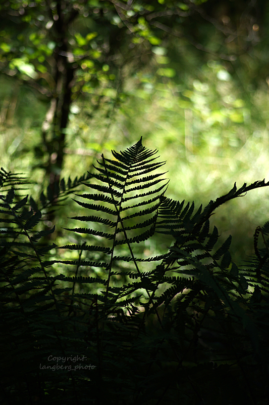 1. Vilka svalkande bilder! Så vackra. Och så fick jag ju se din skakbjörk oskakad 🙂 Bilden med ormbunksiluetten är så vacker. Värmen fortsätter här idag. Och jag såg även höstkänslan i trädgården då vår avenbokshäck har fått massor av gula blad, mest är det nog torkan tror jag.