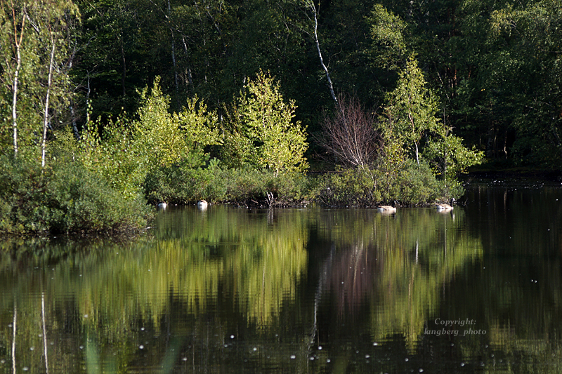 Kan det bli bättre? Behagligt ljus, vindstilla, ca 20 gr och sensommarfärger. Då trivs jag som allra bäst. Jag är nog en sensommar – och höstmänniska. Naturen är, i mitt tycke, som vackrast då. Här följer några bilder från en härlig sensommardag i Änggårdsbergen och från Axlemossen och Finnsmossen. Björkarna här är ganska gröna fortfarande fast man anar lite färgskiftningar åt gult. Men här har de ju ingen brist på vatten i alla fall. På torrare ställen är en del björkar helt gula redan.