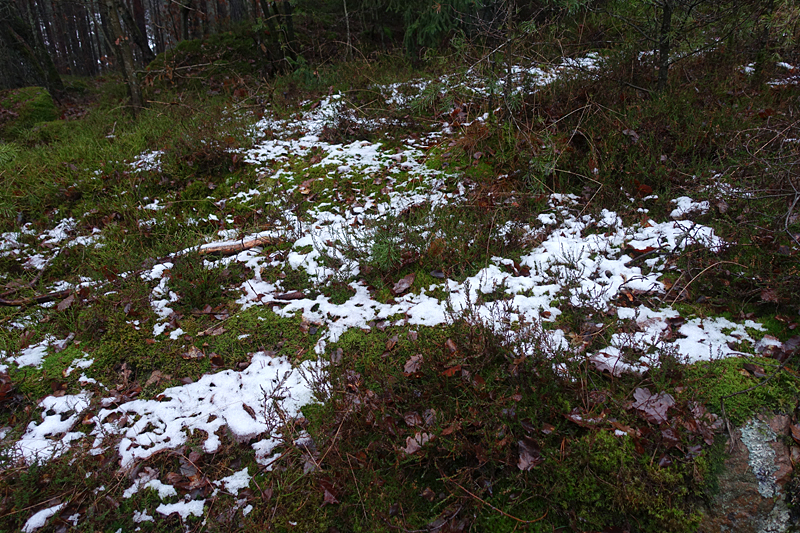 Enda snön hittills. Det är lite kallare uppe på höjderna i Änggårdsbergen och lite snö låg kvar på marken.