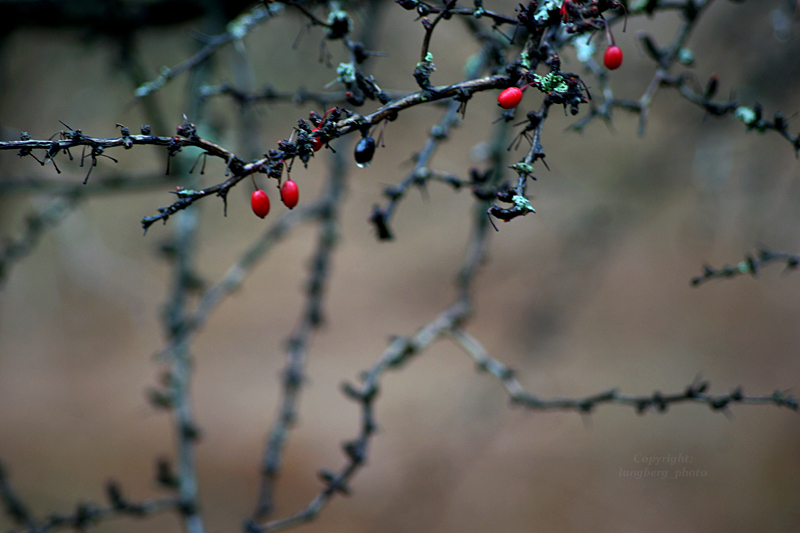 Vilken jätterolig skylt! Att träningsverket finns var ju kul också, trodde att det också var ett skämt. Så vackerhärliga bilder med kyla i luften och de röda bären mot det gråbruna är verkligen