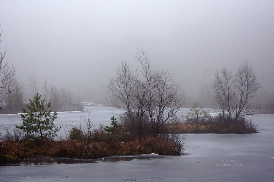 Igår var det vårkänsla här med sol och flera plusgrader. Idag ligger dimman tät här över Göteborg. Dagens promenad gick upp till Änggårdsbergen där dimman också låg tät över de små sjöarna och bergen. Vi har inte gått där på jättelänge men nu när all snö smält bort så gick det fint att promenera där. Det är ju ett av våra favoritställen att promenera på.