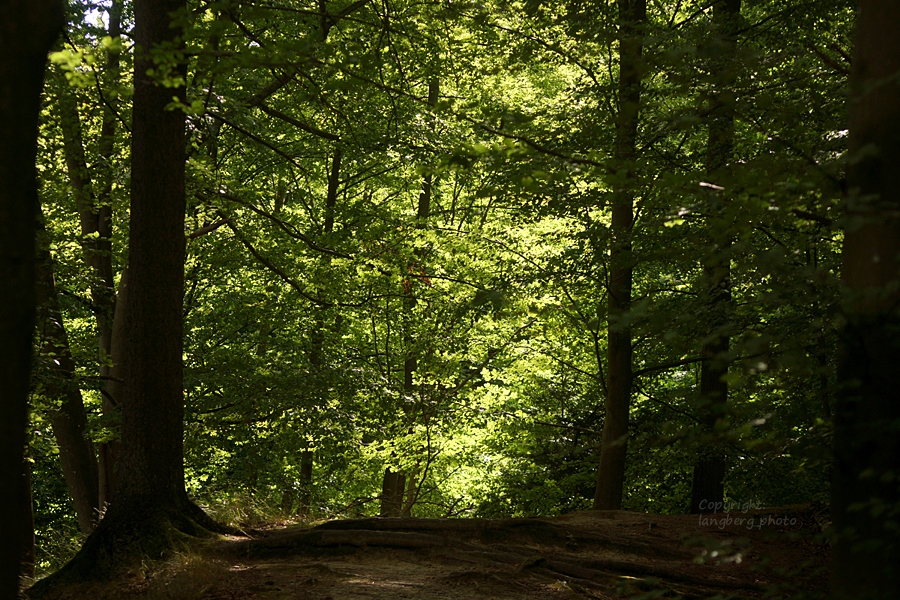 Efter vi gått runt koloniområdet, som inte är så stort, fortsatte vi vägen mot naturreservatet Änggårdsbergen. Bokskogen är grön ännu, men en djupare grönska än den på våren.