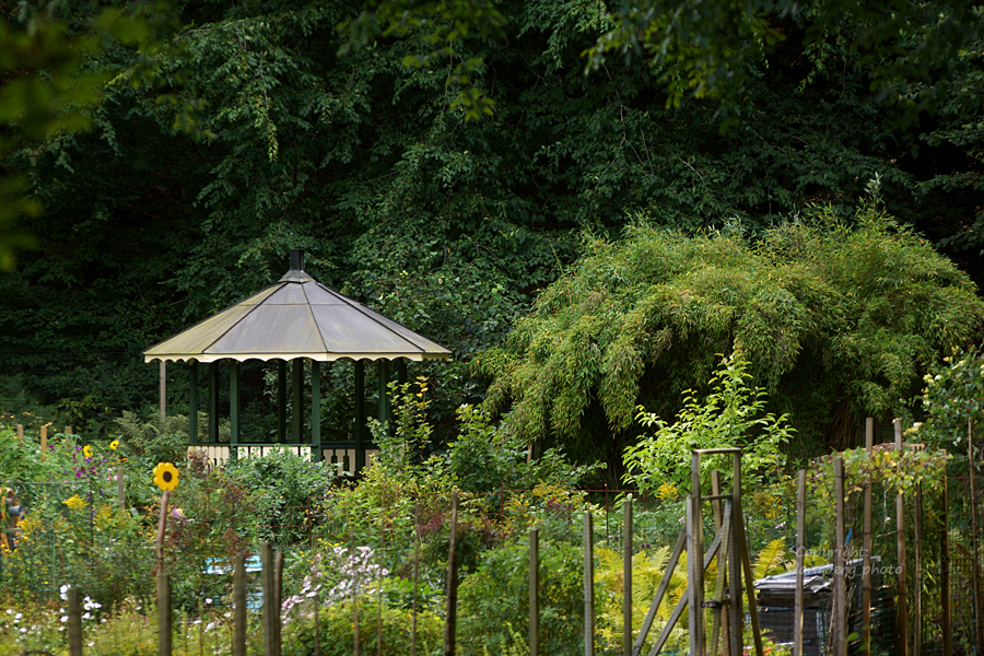 Här ser man en del av koloniområdet. En fin paviljong och en stor bambulund.
