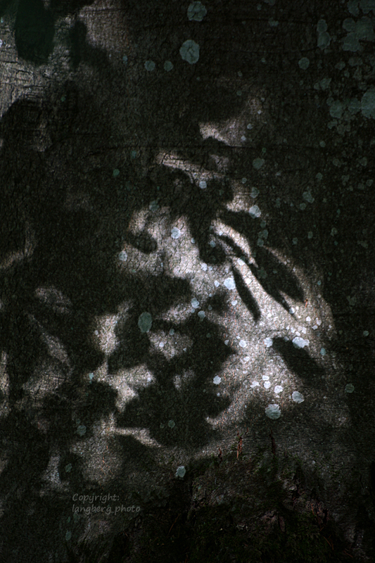 Och sista bilden. När vi satte oss på vår vanliga bänk för att fika så såg jag detta skuggspelet på en bokstam. Naturlig konst.