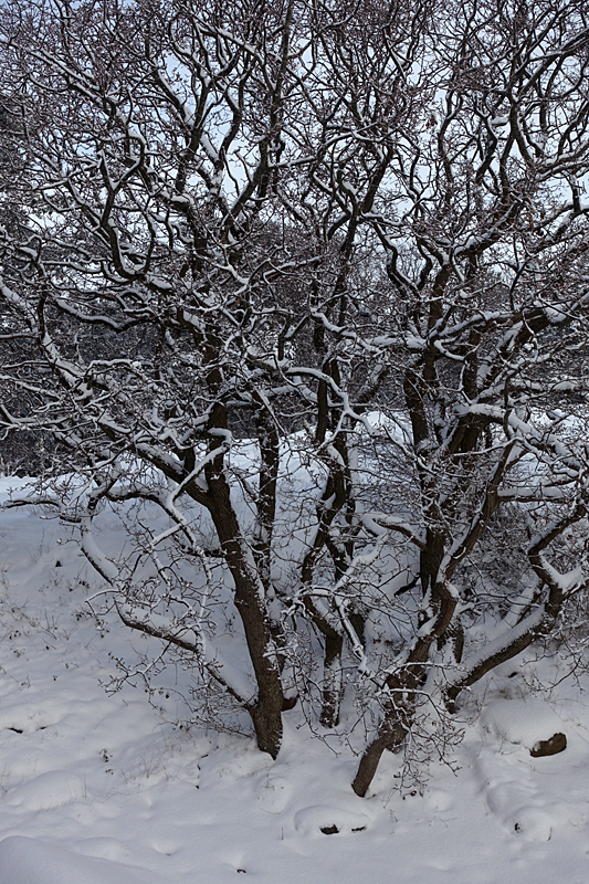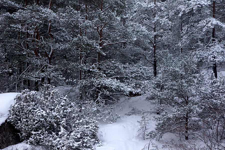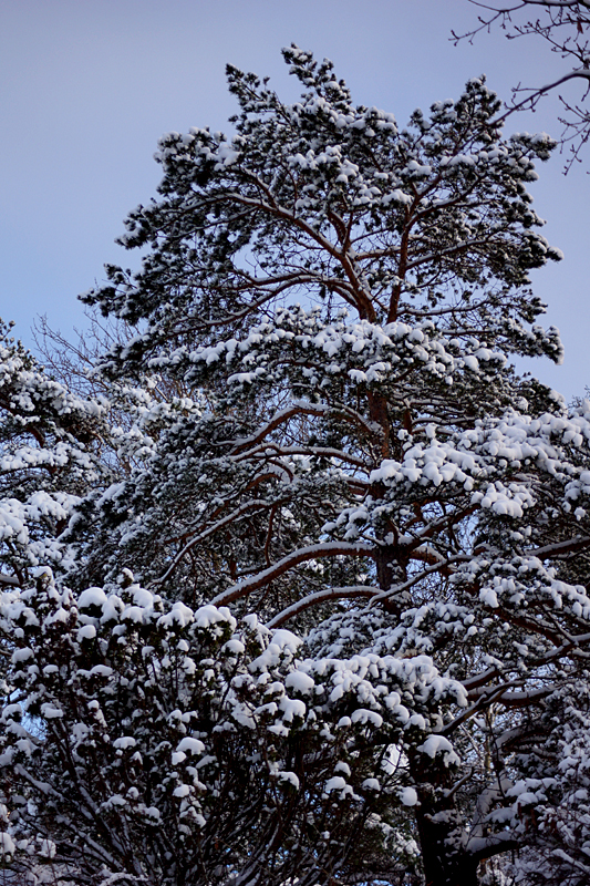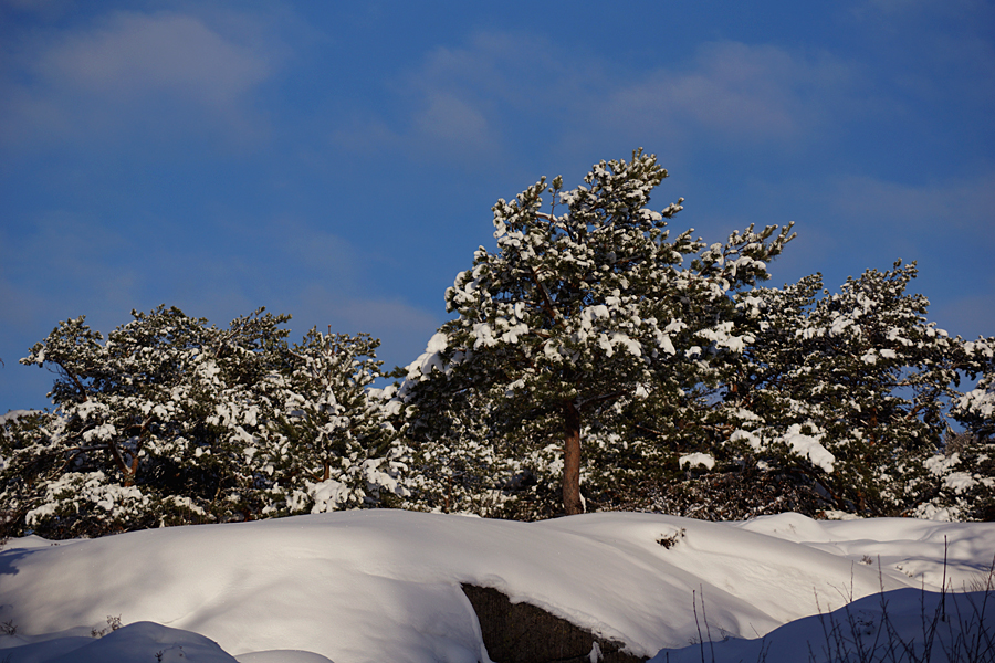 Vi har ju mycket berg här där vi bor, så här är fotovinkeln nerifrån och upp mot berget.VinterlandskapEtt parti nära havetEn klippa nere vid havet.Tall som sträcker sig mot himlenDen här bilden är från samma dag som det var så vacker morgon, tagen med mitt teleobjektiv från balkongen.Och så här ser berget ut i sin helhet, och som jag ofta brukar fotografera från balkongen. Men då använder jag för det mesta mitt teleobjektiv för att komma lite närmare. Om man tittar på bilden före denna, så ser man den del som jag zoomat in med telet, och som jag har försökt markera här på denna bilden, på ett ungefär. Det blir ju ett helt annat intryck när man fotograferar med teleobjektiv och då får man ingen riktigt uppfattning om hur själva berget ser ut. På telebilden kan man ju tro att jag är ute i skogen någonstans 🙂 Bilden här ovan på berget har jag tagit med min lilla kompaktkamera, bara för jämförelsens skull.Vinterträd mot blå himmel, står intill vägen som går ner till havet.Och här, på vår innergård, står en fin Stenek som vi ser från vårt köksfönster. Den är vacker alla årstider. Men speciellt vacker är den med snö på de kala grenarna. Här vid sidan av eken satte jag några lökar av Kungsängslilja för några år sedan, men de ville sig inte riktigt där. Det får bli en bild på en av mina hyacinter också, det hör ju vintern till.