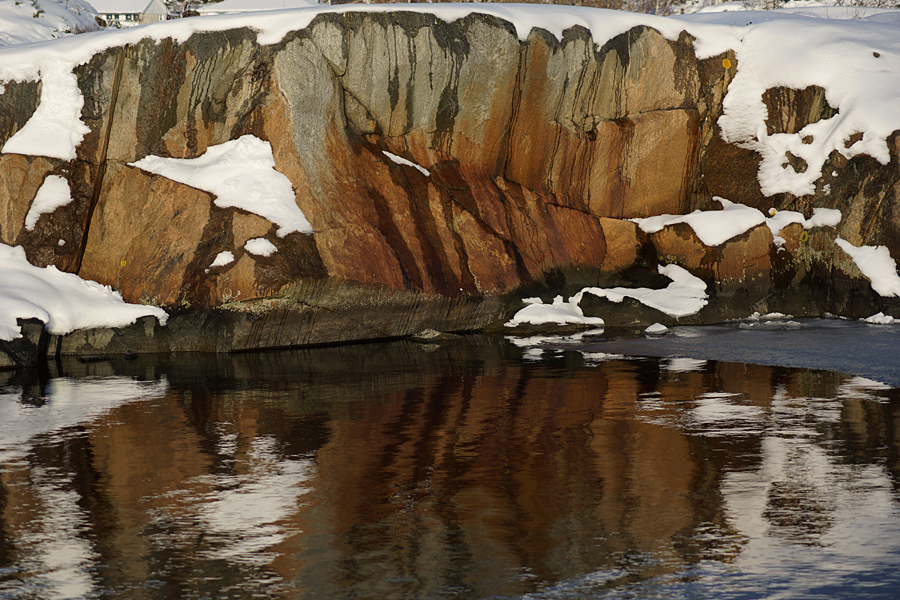 Tack så mycket Eva! Ja, teleobjektivet är nog det jag använder mest. Men jag har inte det allra största, utan ett mindre på 300 mm. Större klarar jag inte av, då måste man ha stativ och då blir det alldeles för jobbigt, och detta räcker bra till mina behov. Jag fastnade för klippan i granit där smält snövatten skapade olika färger och mönster på klippan. 🙂 Trevlig adventskväll!