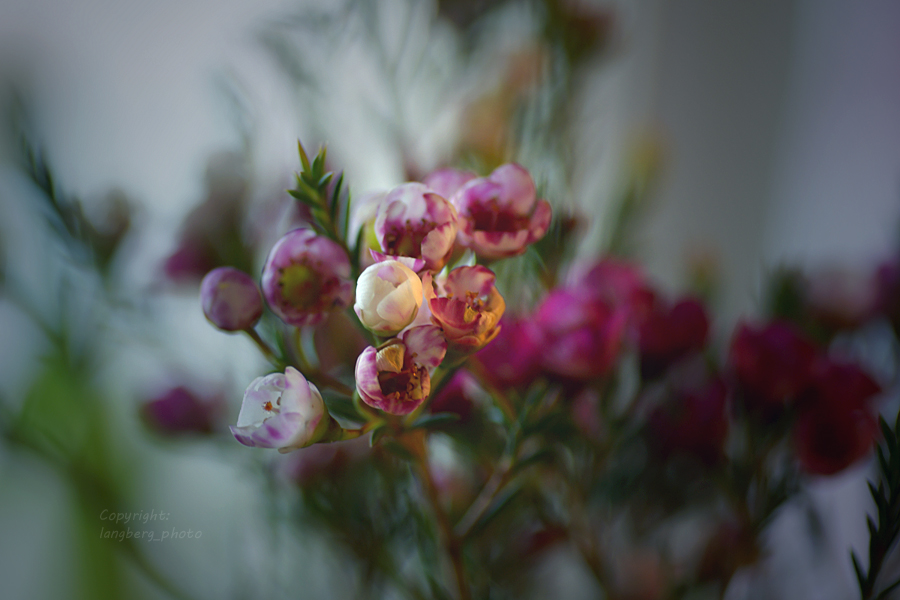 När man tröttnar på tulpaner, fast det gör man ju inte, men om man vill ha lite omväxling, så kan man köpa sig en bukett med Vaxblommor. De är också underbara tycker jag. Finns med blommor i vitt till mörkt vinröda. För många år sedan fanns den som krukväxt, men de är nog ganska svårodlade och trivs inte i torr luft.