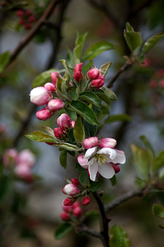 1. Undrar om det var rekordvärmen hos er som gör att det är tidigt. Men .. det är så vackert med äppelblom och jag bara njuter. Njuter också av de späda bladen av rönn och ek. Lav på träd sägs vara bra, hoppas det för mina äppelträd har mycket lav 🙂 Långt kvar till blomning dock.