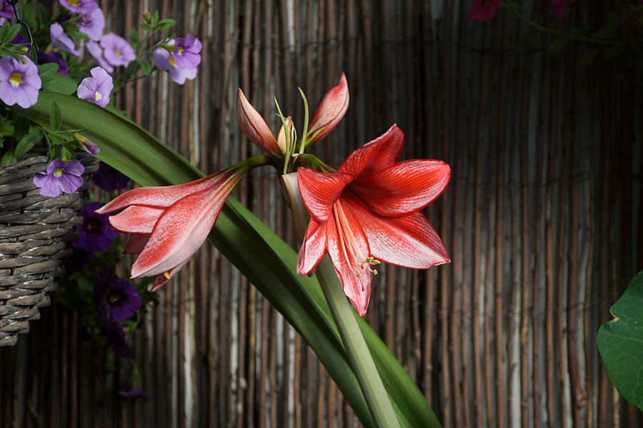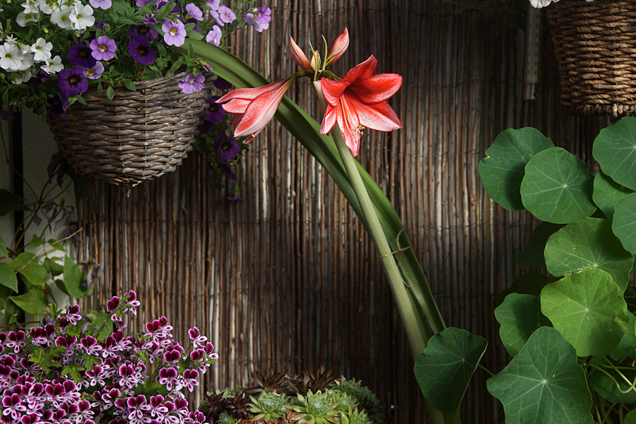 1. En amaryllis är vacker när den än blommar. Din är jättefin och det är härligt att se den tillsammans med sommarblommorna. Läckert hur den sträcker upp sig från krassebladen till höger 🙂 Hoppas den samlar kraft och även blommar till jul.