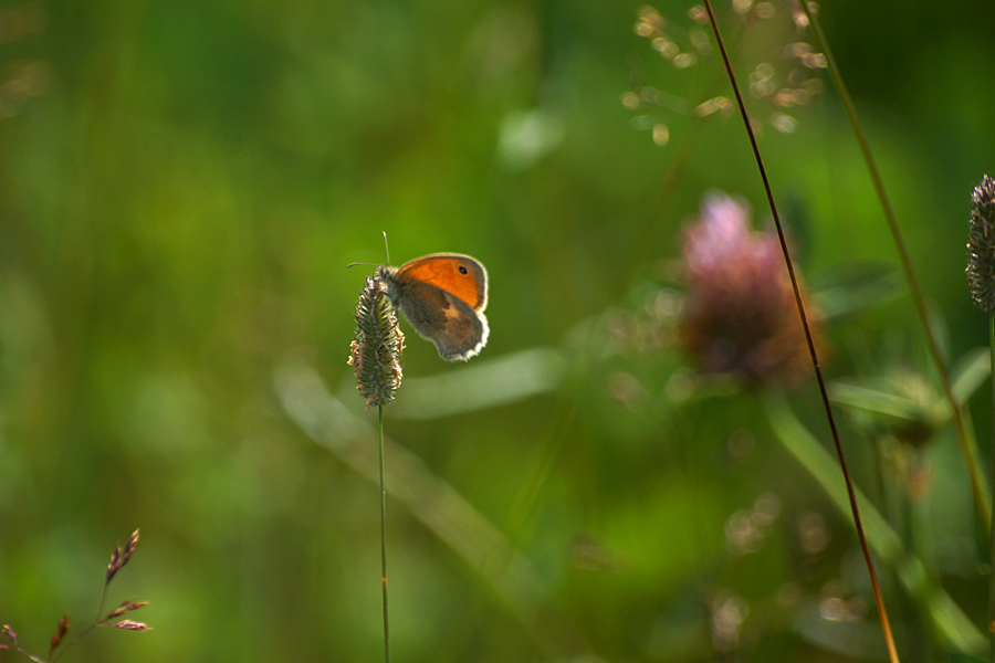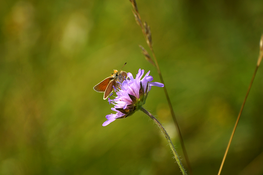 Och så fanns där några gräsfjärilar också. Vad just denna är för sort, vet jag inte riktigt. Möjligen att det kan vara Slåttergräsfjäril.
