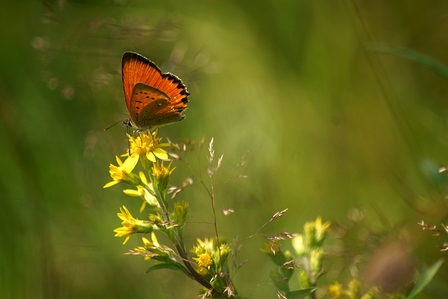 2. Alltid roligt att få syn på en fjäril som man velat få syn på och fota. De gör verkligen skäl för namnet, guldvingarna. Jättefina foton på den! Jag har nog skrivit någonstans att jag inte har sett några blåvingar alls än, men den varmaste dagen hade jag många olika fjärilar på min lilla oreganoäng. Borde ju egentligen ha filmat, där surrade det av massor med humlor också, säkert ett tretttiotal. Gräsfjärilarna dyker upp lite här och där just nu. Jag kan tro att det smakade gott med fika utomhus. Fin fotoserie från ängen!