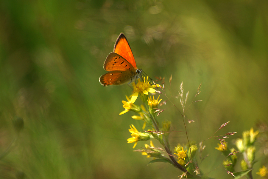 1. Skönt att det ändå börjar komma fler fjärilar, även om dom ännu inte är så många. Vi får hoppas på att dom bara är försenade. Och dina bilder … de två översta är så fina! Och visst är bilden i oskärpa fin, målerisk och vacker. Rallarrosorna blommar nu och det var extra vackert där dom stack upp i det gulbruna gräset.