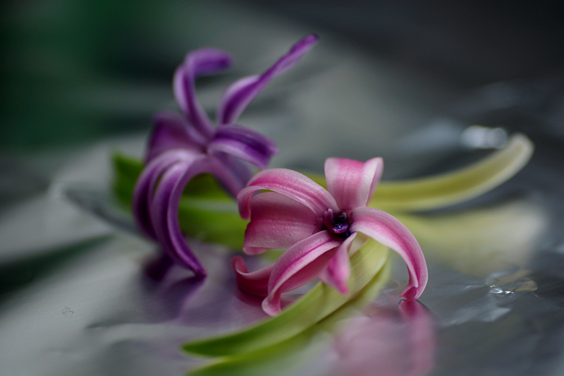Ibland när man tittar i sina bildmappar så hittar man bilder som man alldeles glömt bort! Bilderna i detta inlägg är sådana. Och vi närmar oss ju advent och jul och då är ju hyacinter aktuella. Här har jag även lekt med enstaka blommor på folie. Det kan bli ganska effektfullt. Bilderna är från 2018.