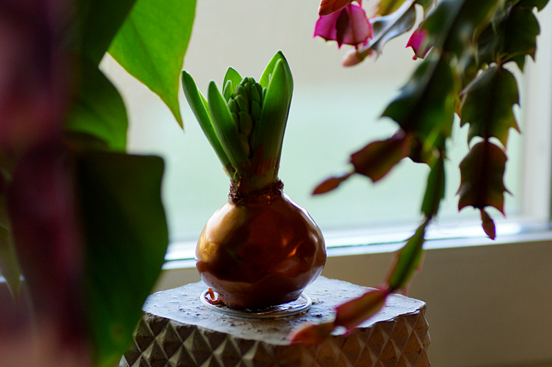 De behöver varken vatten eller jord. Bara att placera dem ljust. De har ju all näring de behöver i löken. Enkelt och lättskött. Det fanns vaxade lökar med glitter och andra färger också. Som en blommande julgranskula. 🎄