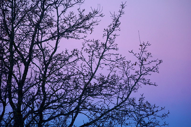 En morgon var det ett väldigt fint ljus i alla fall så jag tog några bilder på grenar mot den vackra himlen.