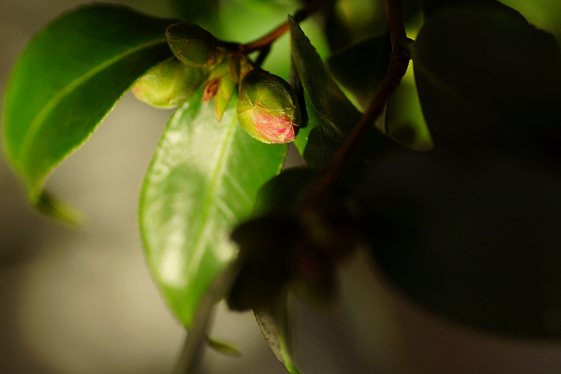 Och nu börjar det hända lite i uterummet! Detta är kamelia ‘Spring festival’. Den är tidig blommande och alltid först ut av mina kamelior. Fast det dröjer nog lite till innan den blommar helt.