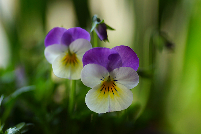 Jag tycker väldigt mycket om de här små violpenséerna. De är mest lika de vilda styvmorsviolerna. Och så tål de en aning frost. Jag har planterat ut en liten låda med minipåskliljor och violpenséer på framsidan, utanför köksfönstret, som jag kan titta på från köksbordet. Den är lätt att flytta in om det skulle bli alltför kallt.