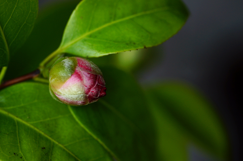 Min kamelia Spring festival blommar men de andra är långt ifrån blomning. Knoppen här är på min mörkt röda kamelia med fina stjärnformade blommor. Ett tag kvar innan den slår ut.