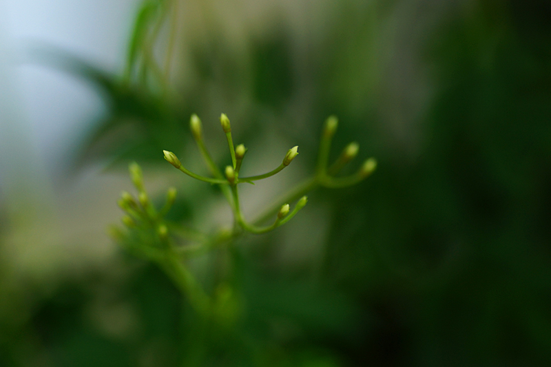 Annars händer det inte så jättemycket i uterummet ännu. Det går lite långsamt i år. Men Vippjasminens knoppar har kommit en liten bit längre nu. Man anar den vita färgen.
