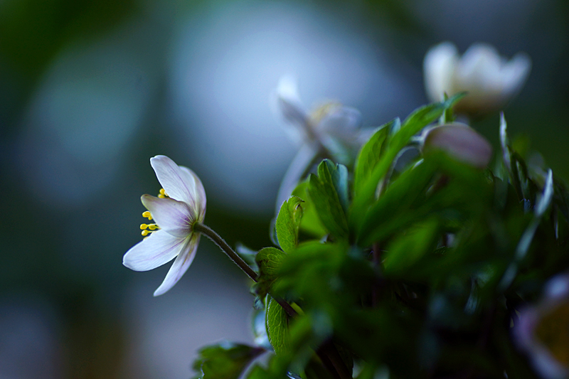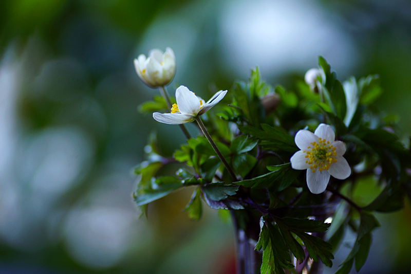 Men jag fick plockat med mig en liten vitsippsbukett hem och så fotograferade jag den en morgon i uterummet. Där blir ljuset fint innan solen når dit på eftermiddagen.