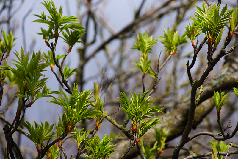 Detta är sista bilden jag tog från denna promenad. Det är rönnarna som står utanför entrén. Nya fina blad på väg. De japanska körsbärsträden blommade däremot inte ännu. Så det får snart bli en tur dit. Dröjer kanske inte så länge till.
