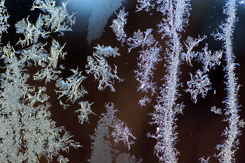 Det blev ingen liten frostträdgård på rutorna i uterummet denna gången, men frostiga har de varit två morgnar nu. En massa mönster, figurer och froststjärnor blev det i alla fall. Det är så vackert med frostkristaller.