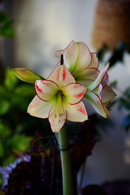Det är ju en väldigt vacker blomma när den blommar. Jag har ibland försökt att spara dem över sommaren, men jag har inte lyckats så bra med det. Så nu försöker jag inte längre. Jag köper några varje säsong och får njuta av dem då. Och jag gillar de sorterna som inte är alldeles vanliga. Det finns ju så många vackra amaryllisar och de helröda, som ju är vanligast i butikerna, är jag inte så jätteförtjust i.