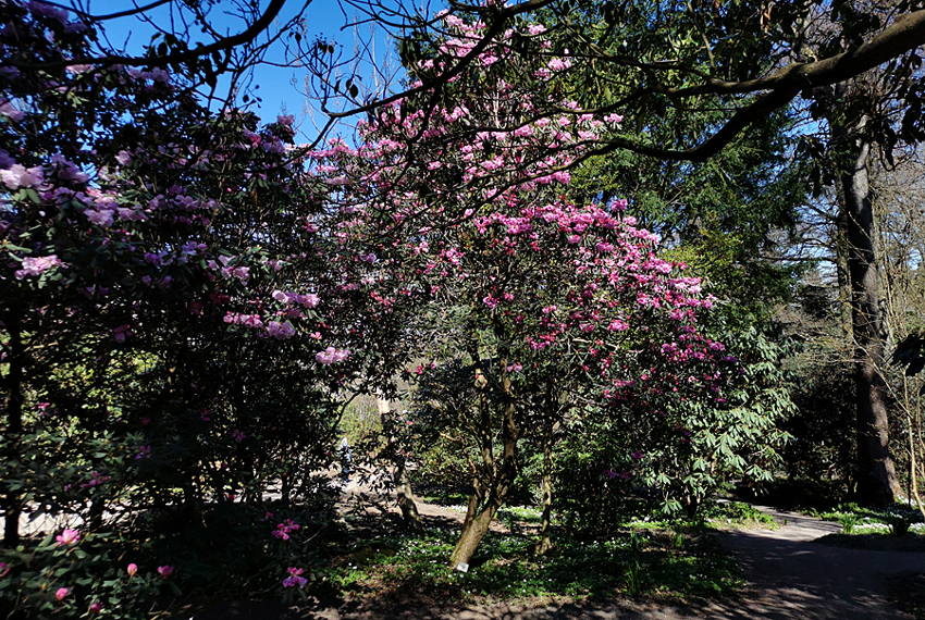 Och i Botaniska trädgården är det de tidigblommande rhododendron som går i rosa. Så oerhört vackert just nu. Jag börjar med bilder på körsbärsblommorna.