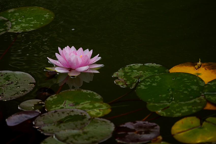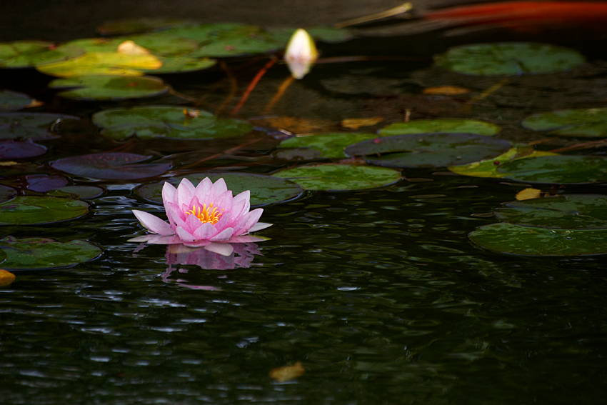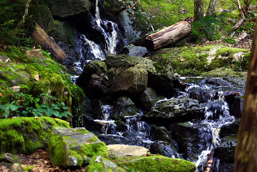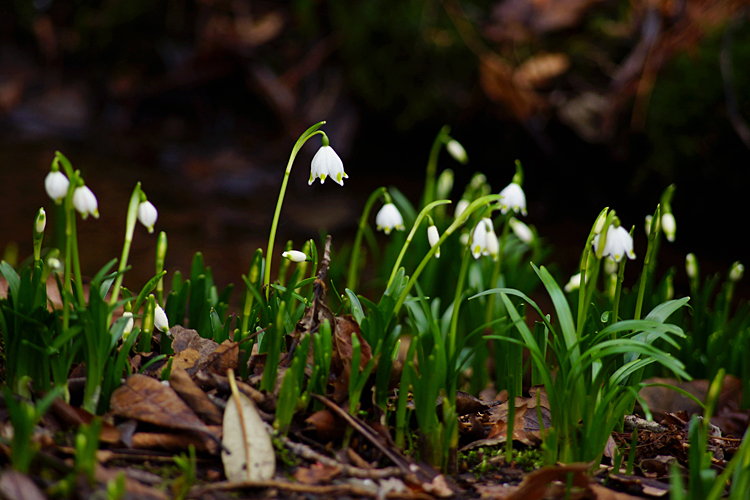 Här är det redan nästan överblommat och blombladen ramlar ner i den lilla bäcken.