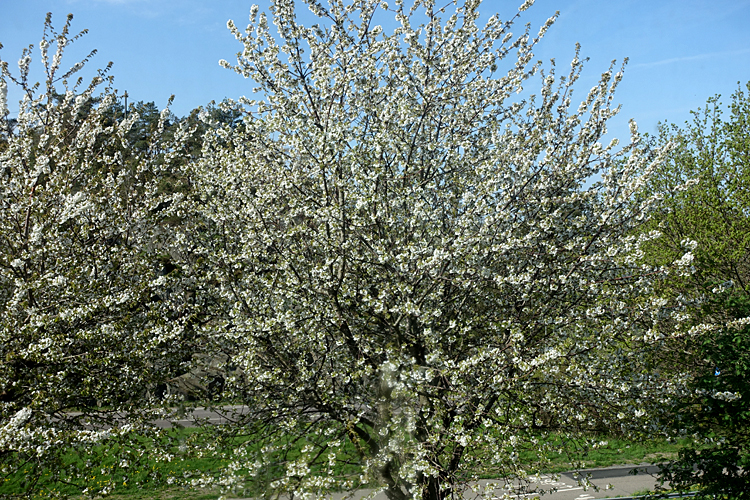 Vi har två körsbärsträd alldeles utanför och de blommar som bäst nu.