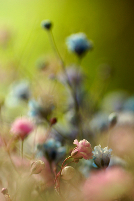 Som ni ser så är det ju sommarblommor. Trift, Hundkex, Gökärt, Rosor, Violpenséer och en pytteliten blomma som liknar Förgätmigej, den mittersta bilden i sista raden. Jag experimenterade också med lite olika vaser och burkar och tapeter som bakgrund. Även tyg hade jag på några bilder.