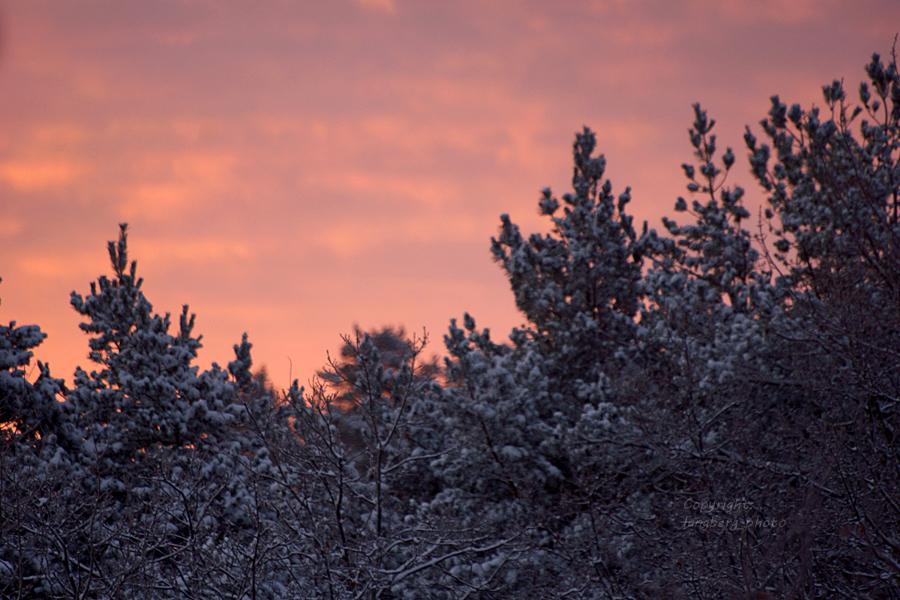 Åh vilken vacker morgon dagens början bjöd på, en riktig vintermorgon. Det är verkligen inte ofta det blir så här i Göteborgstrakten, så jag fick snabba mig ordentligt för att hinna fånga morgonhimlens rosa färg. Jag hade inte ens fått i mig morgonkaffet 🙂