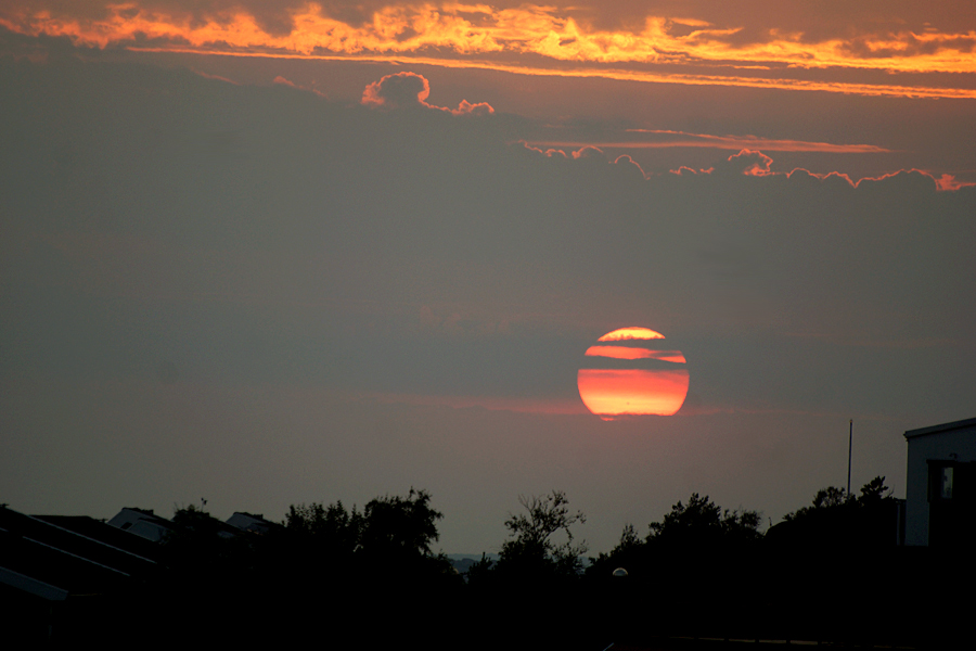 Några bilder från en vacker augustikväll när himlen glöder. Det har inte blivit något fotande för mig, att tala om nu, då jag åkte på ett ryggskott i förra veckan. Svårt att sitta och svårt att fotografera. Men jag kunde inte låta bli att försöka få några bilder på den vackra himlen igår kväll, från balkongen då. 😀