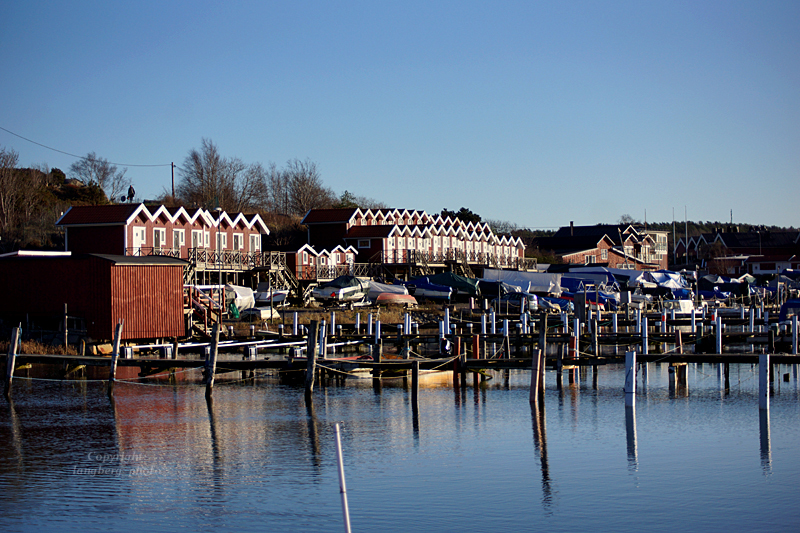 Fredagen den 20 nov bjöd på ett strålande väder med sol och vindstilla efter stormen som drog förbi dagen innan. Solen har ju inte visat sig så ofta nu i november och i denna mörka tiden på året så behöver man verkligen allt solljus och ”tanka” lite D-vitaminer. Och det gör man bra vid havet. Och vi har ju inte så långt till havet, så i detta inlägget blir det bilder från min näromgivning. Här promenerar vi också en hel del. Vi har ungefär 1 km till Önnereds hamn där de här små sjöbodarna står på rad. ( bilden ovan )