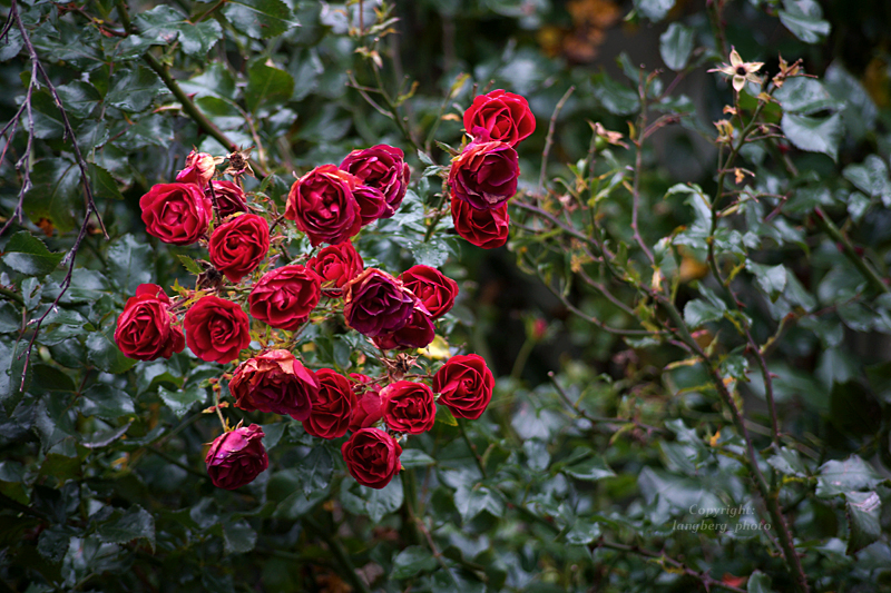 Lite höstpåverkade är de ju men ändå finaRöda rosor vid en annan stugaMurgröna som växer vild, så vacker tycker jag. Härligt grön. 🙂