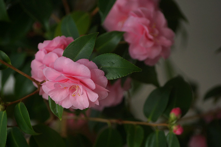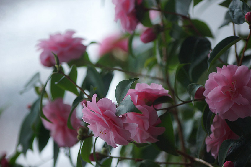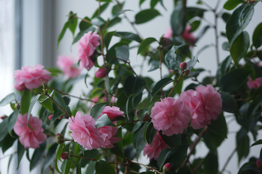 Och även Kameliorna fick komma in i uterummet i onsdags. Bilden är på Spring Festival, som satt många knoppar under utevistelsen. Så nu är det bara att vänta på blomningen! 🪷🌸
