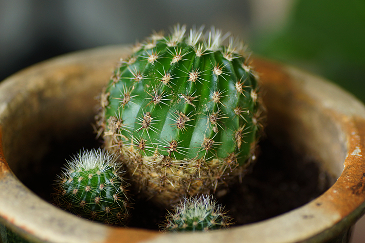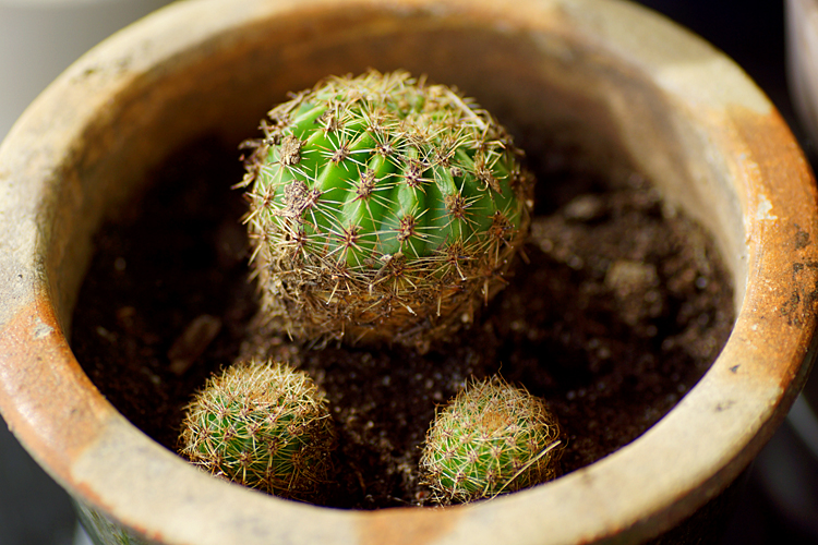 Det här är kaktusen Echinopsis oxygona som jag fick av Anna i portugal. Så Anna, om du ser det här, titta vad fint den har tagit sig! Tittar man noga så ser man en mörkare grön färg överst. Från den ljusare delen är den biten som den vuxit! Även de små har vuxit. Det kanske inte blir blommor denna våren, men jag är så glad för kaktusen och att den verkar trivas. Den har stått hela vintern i uterummet och fått minimalt med vatten. Nu när det blir varmt i uterummet på dagarna har jag ökat på vattningen, men bara lite. Kanske jag ska plantera om den lite längre fram.