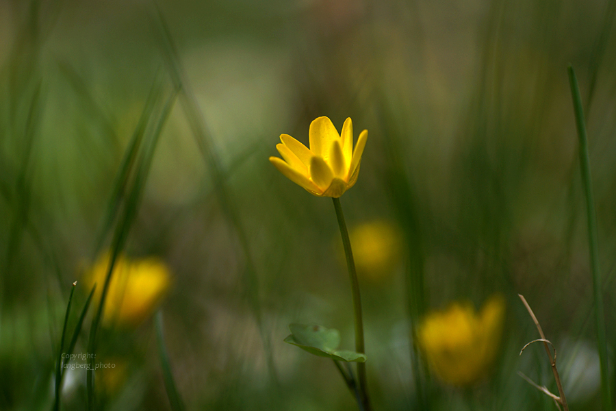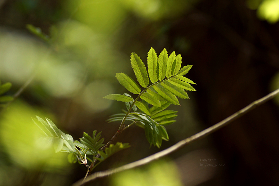 RönnbärsbladOch liljekonvaljerna är på gång!Även liljekonvljebladen är vackra i solljusetSvalörten lyser gul i gräsetSlånbärsknoppar. Här blommade de inte ännu, men på andra ställen har jag sett att de slagit ut. Just dessa står i en sänka uppe i Änggårdsbergen och där är det nog lite kallare.