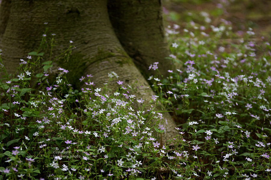 En vårängBlad framför stammarOckså en bladbild. Vårljus i vårskogenEtt blommande vildkörsbär med vita blommor