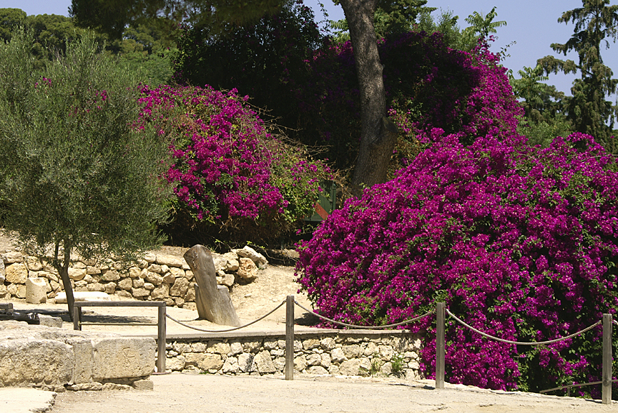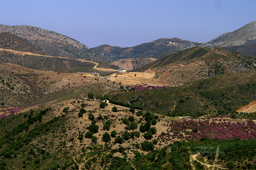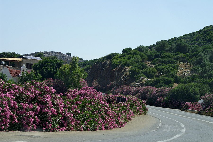 En by som man också såg från vägen till Plakias.Fantastiska vyer över bergen.Nerium Oleander såg man överallt! Jag har aldrig sett så mycket Nerium som på Kreta.Vi stannade och fikade på vägen genom bergen. Mäktiga vyer överallt. Här var det skogar med Nerium.Det var verkligen vackert uppe i bergen. Här blommar ginsten för fullt.Fullt med Nerium i en ravin.Ett litet kapell insprängt i berget vid en av vägarna vi körde på.Detta är inte Plakias. Jag minns inte namnet på denna orten som vi såg när vi stannade till vid vägen.. På ett ställe där vi stannade för att tanka, fanns det massor av blommor och där vimlade det av fjärilar.Ett annat ställe där det också var gott om fjärilar. Tistelfjäril på tistlar 🙂Vi besökte även Knossos, men där var det så hett så där kunde vi bara gå en liten stund.Knossos är den största arkeologiska fyndorten från grekisk bronsålder och ligger på Kreta i Grekland. Knossos var den minoiska kulturens religiösa och politiska centrum. Forskare har kommit fram till att Knossos byggdes ungefär samtidigt som pyramiderna i Egypten. Källa: WikipediaHärliga Bougainvilleor vid poolen till hotellet.