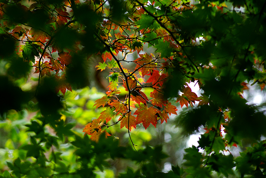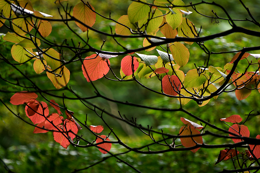 Redan lite höstfärger på berget mitt emot balkongen.