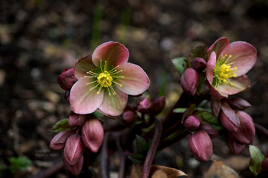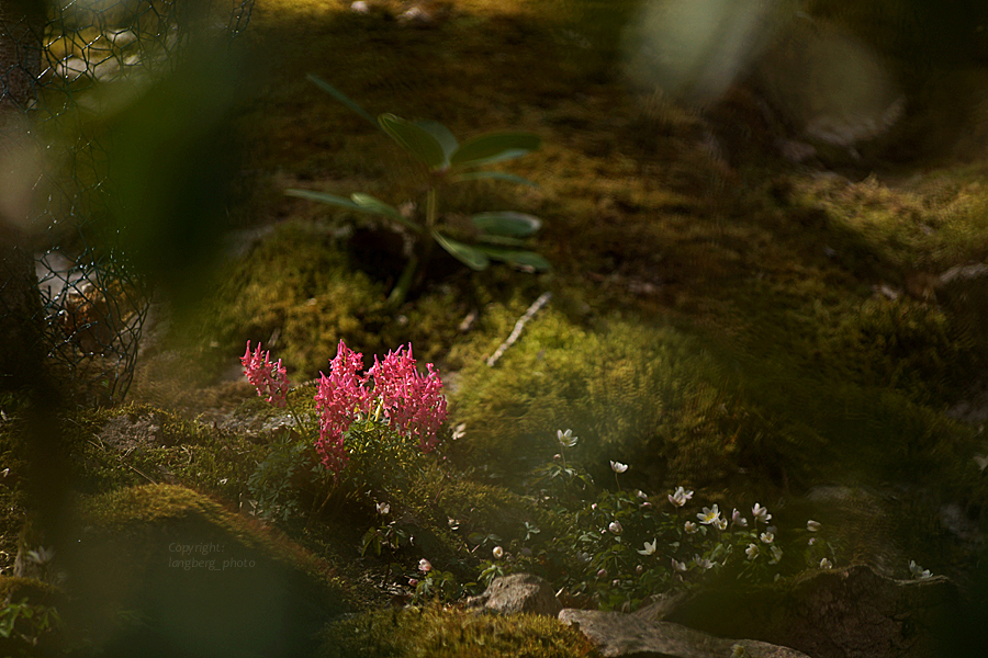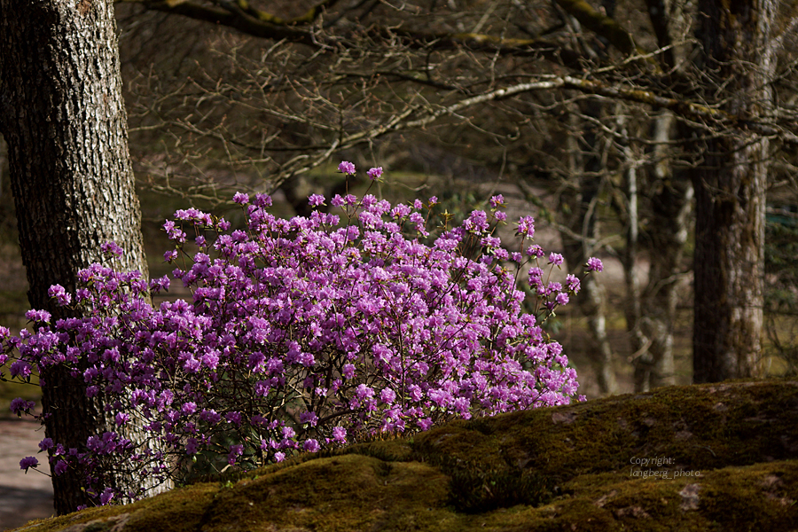 Krokusar vid ett trädTrollhasseln i full blomDet här är Japansk trollhassel. Den är lite rödare i färgen, men annars lik den vanliga trollhasseln.Vintergäcken börjar sjunga på sista versen.Det här är en kulturform av Blåsippa. Lite större blommor än den vanliga och den heter ju också Stor blåsippa.Och underbara Julrosor. Jag gillar denna mörka färgen, så läckra!Ett vackert mjukt täcke av mossa när man går i Smithska dalen.En Rhododendron som speglar sig i dammen i Japandalen.Massor av Snöklockor på vägen upp till Klippträdgården.Körsbärskornellen börjar blomma med sina lysande gula blommor.