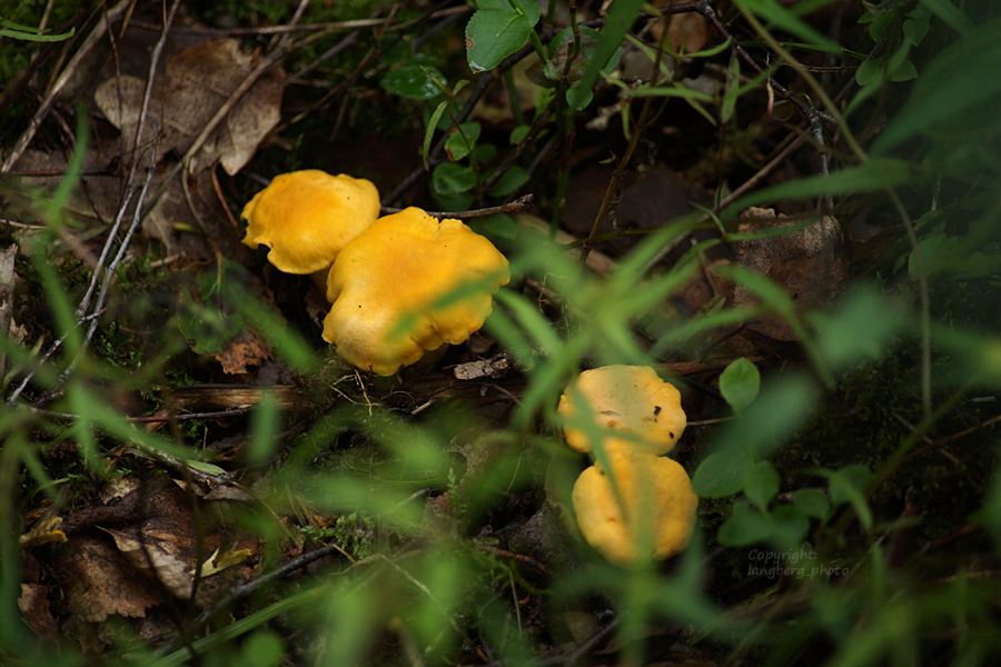 Vildkaprifolen börjar blomma och den doftar gudomligt!Vägen till fjärilsängen, grönt och fint.Kantarellerna börjar komma! Det har regnat en del här den senaste tiden och det har satt fart på dem. Innan regnet så hittade vi några också, men de var nästan helt uttorkade. En del björkar har redan börjat gulna.