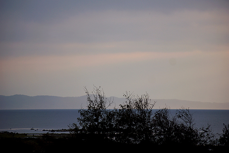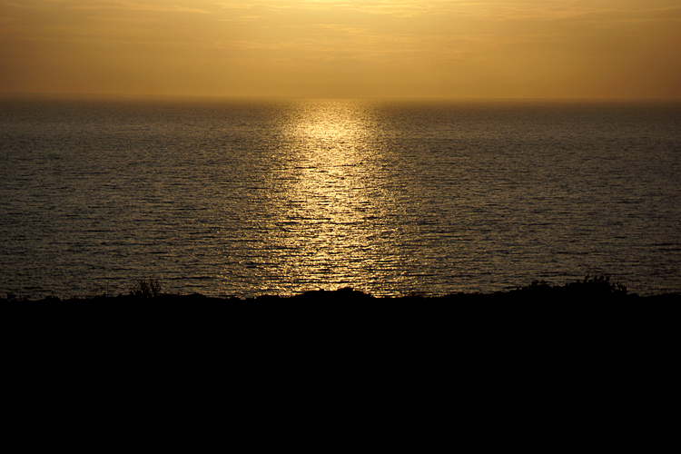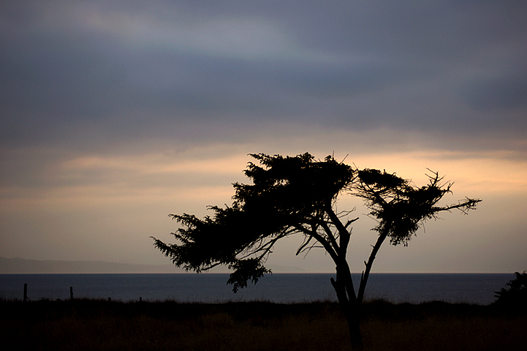 Här får man nästan lite savannkänsla. Det står några vindpinade enar på ängarna ner mot havet som blir fina siluetter mot himlen.