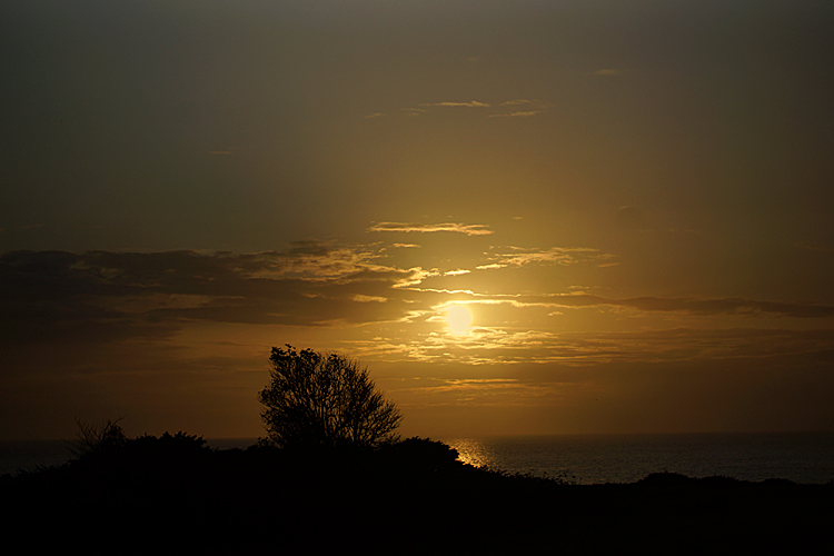 Himlen är ständigt skiftande där vid havet. Egentligen tycker jag inte om när solen blir så stark som i denna bilden, men jag gillar den ändå. Det är nog trädet i förgrunden som gör denna bilden, i mitt tycke. Och ibland är himlen guldfärgad, lite kallt brukar det vara då.