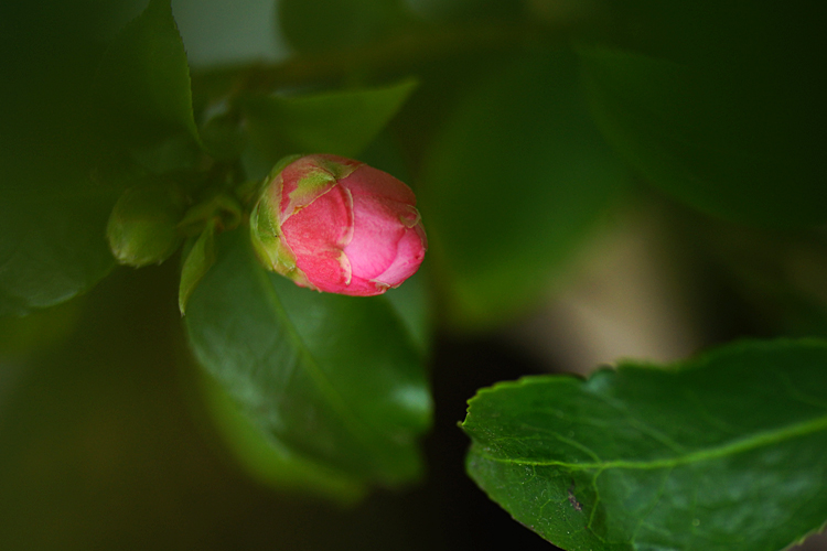I år är det kamelian Spring festival som kommit längst, ja, den brukar alltid vara först ut. Men än så länge är det bara knoppar som visar lite färg. Kylan håller igen dem.