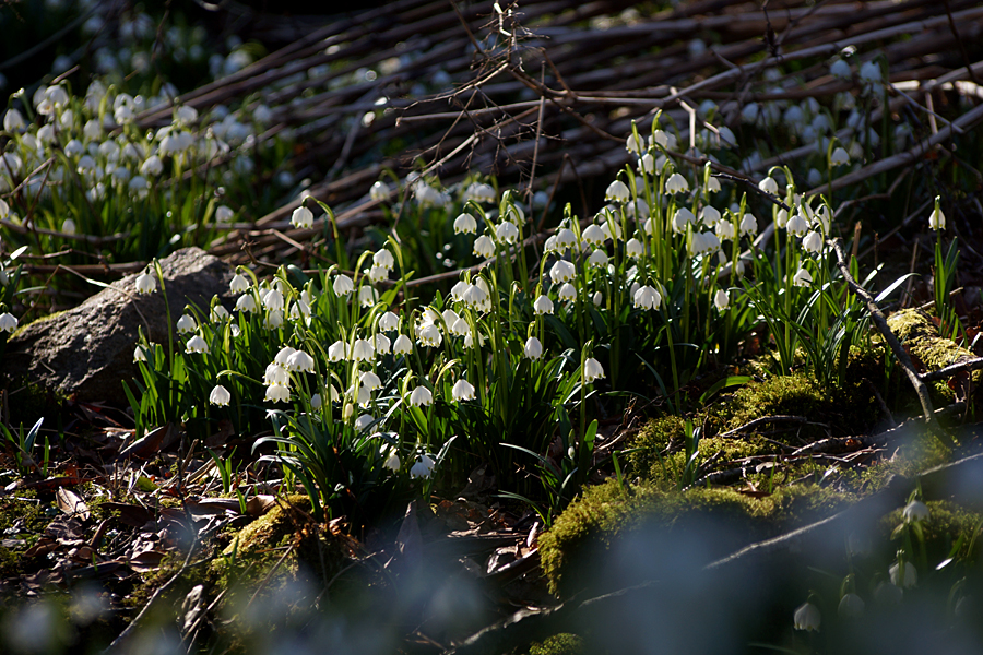 Sträcker sig mot ljusetHär brer de ut sig runt trädstammenDet lyser verkligen om krokusarnaSnöklockorna i full blomFina är demEn större variant av VintergäckOch så några Rhododendronknoppar som är på gång. Här var det ett skyddat läge, så det var nästan bara dessa knoppar som syntes ännu.