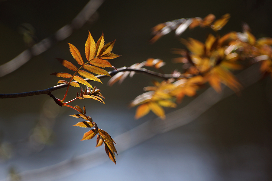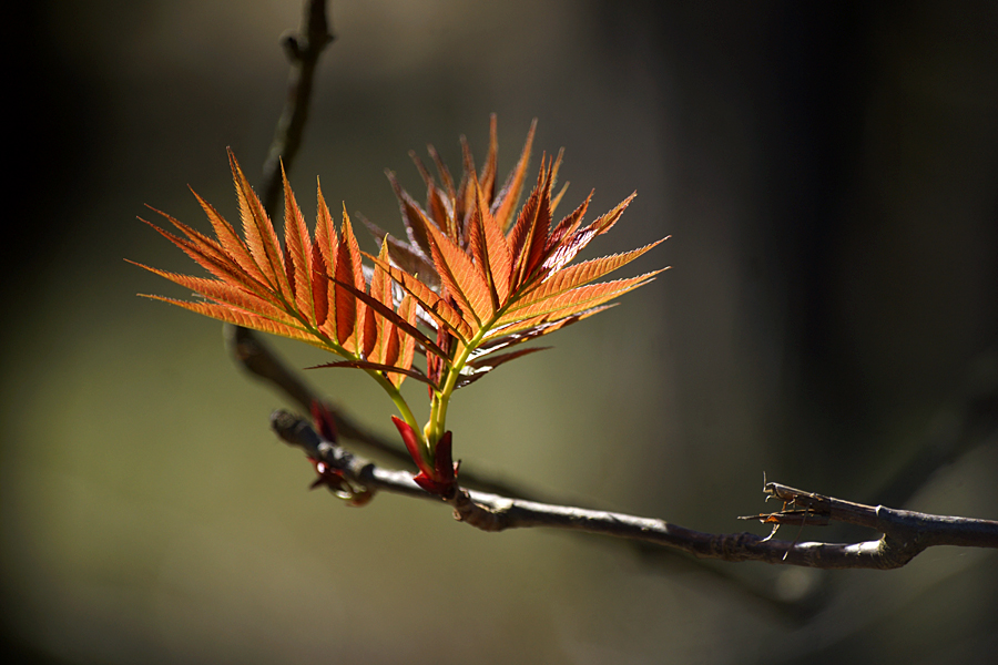 ….. i naturen. Efter en vecka med nästan sommarvärme här så spricker det ut på träden och de börjar grönska. I Änggårdsbergen växer det en del ovanliga träd som t.ex Japansk rönn. Den får så vackra blad när den slår ut på våren. Färgen påminner dock mer om höst än vår.