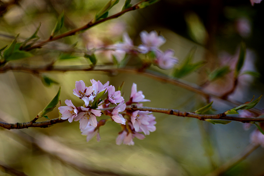 Den blommade ändå inte riktigt fullt ännu. Förra våren blommade den som allra bäst i början på april, då lyste det rosa på långt håll och det var det som gjorde att jag upptäckte den då.